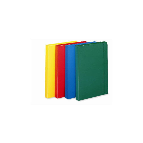 Portaprogetti con chiusura ad elastico e doppio incastro laterale. Materiale: polipropilene da 0,6 mm. Dorso: 3 cm. Colore: azzurro.