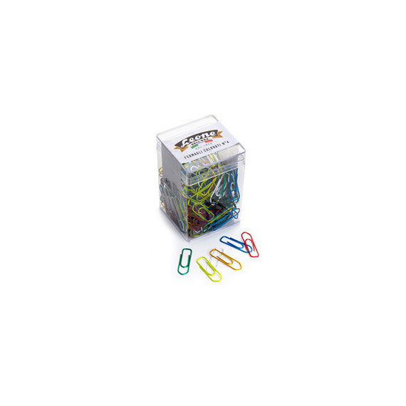 Scatola in plastica trasparente contenente fermagli antiruggine colorati ricoperti con vernici metallizzate per unÆ eccezionale protezione alla corrosione e per permettere lo scorrimento sulla carta senza strappi. Colori assortiti vivaci e metallizzati. Confezione da 250 pz. in colori assortiti della misura n.4 da 32mm.