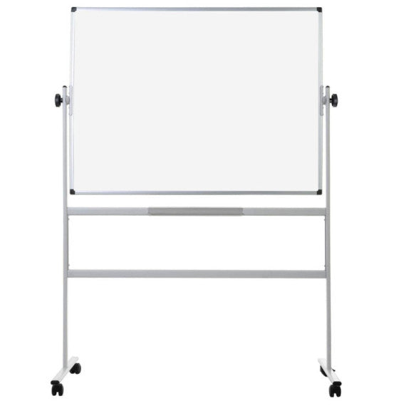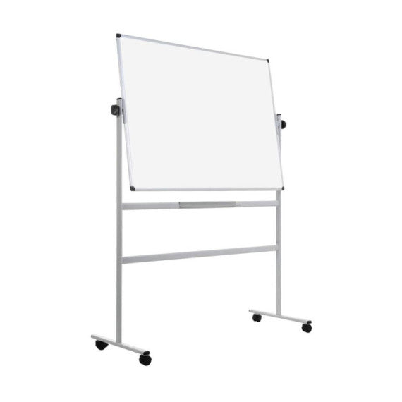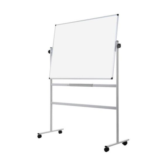 Lavagna bianca a doppio lato girevole, mobile e pratica. Soluzione mobile economica. Supporto resistente montato su quattro rotelle bloccabili. Superficie magnetica in acciaio laccato con 10 anni di garanzia sulla superficie. Vassoio portapenne riposizionabile in metallo. La lavagna Revolver ruotano a seconda delle esigenze e consentono di mostrare o nascondere le informazioni pre-preparate usando i pannelli a doppio lato.