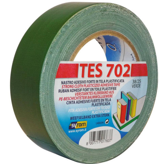 Nastro adesivo in tela Tes 702 SYROM formato 38mm x 25 m - materiale tela plastificata verde - 1763