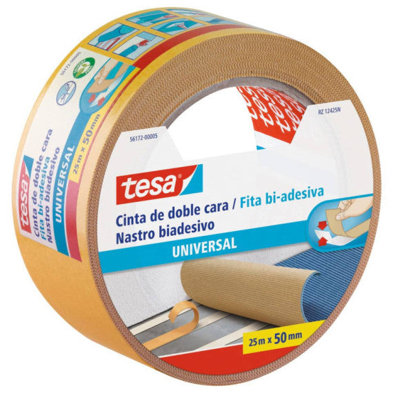 tesa® Nastro biadesivo Universale garantisce una buona adesività su tutte le superfici piatte e lisce. Il nastro può essere facilmente strappato con le mani in modo da garantire una facile e veloce applicazione senza il bisogno di ulteriori attrezzi. Ha una forte adesività per garantire un fissaggio permanente.tesa® Nastro biadesivo Universale ha una altezza di 50 mm ed è disponibile in rotoli da 5, 10 o 25 metri. Il rotolo più piccolo può essere usato per piccoli lavori manuali o di decorazione. Il rotolo più grande è ideale per lavori di posa della moquette.