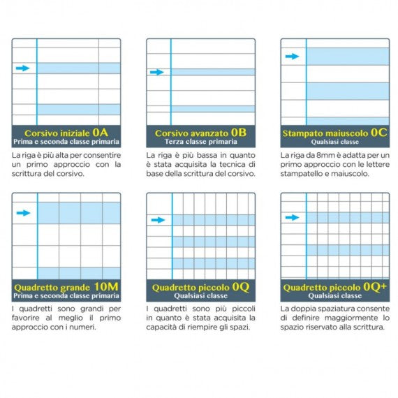 Ricambi didattici adatti a studenti con difficoltà di scrittura o coloro che desidera scrivere in modo preciso e ordinato. Sono progettati e realizzati in accordo alle linee guida sulla disgrafia. Presentano i necessari riferimenti cromatici per compensare il difetto di scrittura. Realizzati in carta da 100gr estremamente resistente alle cancellature e ai segni dell'uso quotidiano. Confezione da 40 fogli.