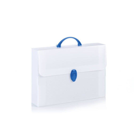 Valigetta Every Line in polipropilene alveolare neutro. Ideale per riporre e trasportare comodamente documenti, disegni e progetti. Completa di film protettivo, maniglia e pratica chiusura a scatto. Formato 37,5(L)x27(H) dorso 8 cm. Colore valigetta neutro. Colore accessori assortiti.